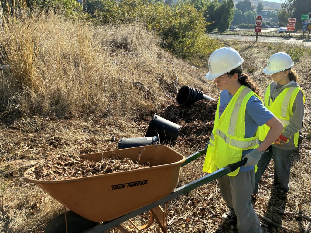 Members from Benicia High’s Key Club volunteered for the Tree Care Day on October 18 at the Benicia Tree Foundation’s Adopt-a-Highway project located on the Columbus Parkway eastbound offramp from I-780.  The volunteers weeded and mulched all twenty-six trees planted there in the past two years.
